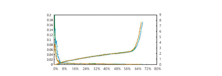 如下圖可知,金屬簧片在被壓縮15%-60%的范圍內(nèi),壓縮電阻很小,且?guī)缀鯖]有波動(dòng);同時(shí),壓縮力在此范圍內(nèi)也相對(duì)小,也沒有突然增大,這就是為什么我們經(jīng)常推薦客戶設(shè)計(jì)間隙值為材料壓縮30%的值的原因。請(qǐng)咨詢我們的工程師提供一對(duì)一設(shè)計(jì)和產(chǎn)品選擇。